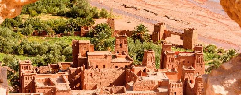 tivos de Ouarzazate. Comenzaremos por la enorme Kasbah de Taourirt, que ha servido de escenario para varias películas y después nos dirigimos hacia la Kasbah de Aït Ben Haddou, una ciudad fortificada de tierra rojiza. Almuerzo y salida hacia Marrakech. Llegada, traslado al hotel, cena y alojamiento.