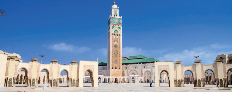 Desayuno y dejamos Marrakech para salir hacia Casablanca. Una vez lleguemos a la ciudad, comenzamos con la visita dela misma por el bario Barrio Habous, conocido como la nueva Medina y lleno de zocos, y la plaza Mohamed V, el centroneurálgico de Casablanca. Almuerzo. Por la tarde visitamos el Boulevard de la Corniche junto con el paseo marítimoAnfa, un agradable paseo viendo el mar, y finalmente llegaremos hasta el exterior de la Mezquita Hassan II, el icono de Casablanca. Traslado al hotel, cena y alojamiento.