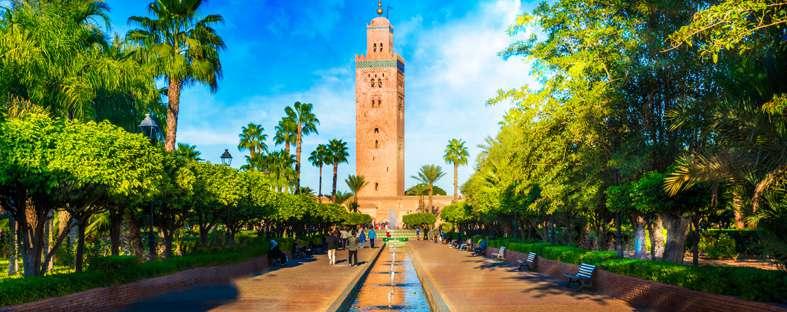 Buenos días desde Marrakech. Ahora sí, aprovecha al máximo el tiempo en tu paso por la “ciudad roja” y descubre su encanto. Te recomendamos que explores la Medina, la zona de mayor atractivo, pues allí te esperan lugares encantadores como la emblemática Plaza de Yamaa el Fna, llena de ambiente gracias a los zocos, los encantadores de serpientes y los músicos que hacen de este rincón un sitio único y especial. De gran interés son también las Tumbas Saadís, construidas en el siglo XVI y (re)descubiertas en el año 1917; los riads, antiguos y pequeños palacios árabes con patio interior que han sido reconvertidos en hoteles; los Jardines Majorelle, los más bonitos de Marrakech gracias a la gran variedad de especies de todo el mundo, sus fuentes, sus lagos y sus casas de color azul; el Palacio de la Bahía, que con sus 8.000 m2 de extensión fue construido con la pretensión de ser el más espectacular del mundo; y, por supuesto, la inconfundible Mezquita de Koutoubia con su minarete de 66 metros de altura. Y no olvides que tienes incluida una visita histórica de medio día organizada.