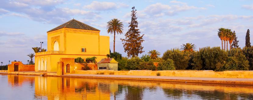 Desayuno. Por la mañana, según la temporada, visitaremos a Medersa Ben Youssef donde antiguamente los estudiantes memorizaban el Corán (de Noviembre a Abril), o los exóticos Jardines Majorelle (de Mayo a Octubre) llenos de multitud de plantas distintas. Almuerzo en restaurante de la Medina. Tarde libre. Cena y alojamiento.