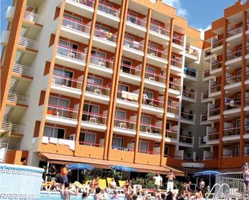 Conta com 180 m de piscinas ao ar livre. Dispõe de 305 apartamentos de 1 e de 2 quartos, totalmente equipados com cozinha, ampla zona de estar e varanda, dispõe ainda telefone, cofre e WI-FI gratuito. O Restaurante Buffet oferece os serviços de pequeno almoço, almoço e jantar, com bebidas incluídas.