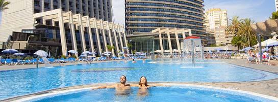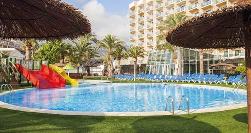 1 piscina ao ar livre, rodeada por uma esplanada com espreguiçadeiras, com serviço de bar na piscina, camas balinesas e zona Chill Out. O novo centro SPA&WELLNESS dispõe de todo o tipo de tratamentos, para além disso o circuito termal do Hotel é grátis para os clientes das 16h às 20h, excepto aos domingos fechado (Temporada alta, abre 7 dias). Também dispõe de restaurante à carta a pedido, Tudo incluido, lobby bar, actuacões ao vivo, lojas (gourmet, boutique…), salão de TV e de jogos, serviço grátis de toalhas para praia e piscina (1 por dia), cadeiras e guarda-sóis na piscina grátis e na Praia com custo. Não admite animais. Wifi grátis. Acesso para pessoas com mobilidade reduzida.