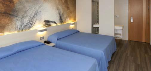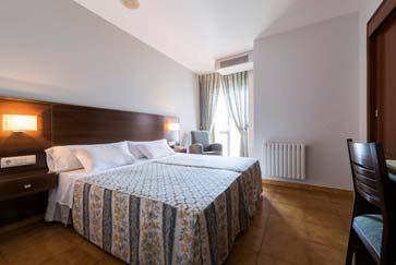 Sus habitaciones, todas exteriores y con terraza, disponen de baño completo, bañera con ducha, secador de pelo y amenities, Tv, teléfono, aire acondicionado/calefacción, minibar (de pago), caja fuerte y servicio despertador. Dispone de habitaciones adaptadas para personas con movilidad reducida y todas las instalaciones son accesibles.