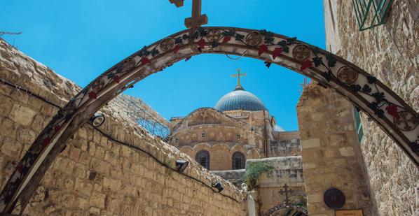 dad Santa desde la cima del monte. Paseo hasta la pequeña capilla franciscana de Dominus Flevit en la falda del Monte de los Olivos, pasando junto a la Iglesia Rusa de María Magdale na. Visita del Huerto de Getsemaní con sus olivos milenarios, Basílica de la Agonía, Gruta del Prendimiento y la Tumba de la Virgen. Almuerzo. Por la tarde, visita de la Ciudad Vieja de Jerusalén: Iglesia de Santa Ana y Piscina Probática. Recorrido siguiendo los pasos de Jesús por la Vía Dolorosa, comenzan do en la capilla de la Flagelación y siguiendo hasta el Santo Sepulcro. Visita de la Basílica de la Resurrección: Calvario y Santo Sepulcro. Regreso, cena y alojamiento en Jerusalén.