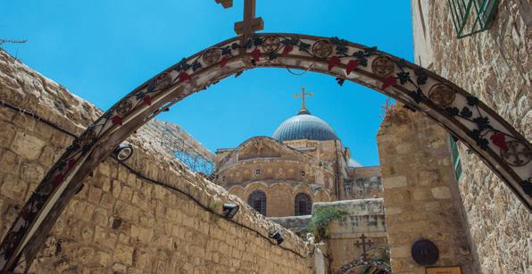 dad Santa desde la cima del monte. Paseo hasta la pequeña capilla franciscana de Dominus Flevit en la falda del Monte de los Olivos, pasando junto a la Iglesia Rusa de María Magdalena. Visita del Huerto de Getsemaní con sus olivos milenarios, Basílica de la Agonía, Gruta del Prendimiento y la Tumba de la Virgen. Almuerzo. Por la tarde, visita de la Ciudad Vieja de Jerusalén: Iglesia de Santa Ana y Piscina Probática. Recorrido siguiendo los pasos de Jesús por la Vía Dolorosa, comenzando en la capilla de la Flagelación y siguiendo hasta el Santo Sepulcro. Visita de la Basílica de la Resurrección: Calvario y Santo Sepulcro. Regreso, cena y alojamiento en Jerusalén.