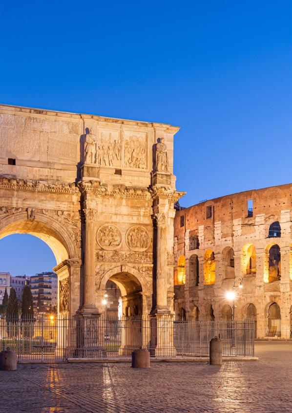 Desayuno y excursión opcional de Roma Antigua: Avenida Foros Imperiales, Coliseo - el anfiteatro Flavio -, Arco Constantino... El Foro Romano constituye un entorno suntuoso, erizado de columnas, arcos triunfales, muros en ruinas y templos convertidos en iglesias, con avenidas enlosadas que fueron testigos de doce siglos de historia. Antes de visitarlo con detalle hay que descubrirlo desde la colina del Capitolio o desde el tabularium que, en los museos capitolinos, forma una terraza asomada al centro de la ciudad antigua. Tarde libre. No olvide visitar el Trastévere. La juventud bohemia y los noctámbulos a la última han regresado al bonito y popular barrio del Trastevere, al que calles empedradas, casas de fachadas irregulares y tiendecitas le dan un aire muy de pueblo.