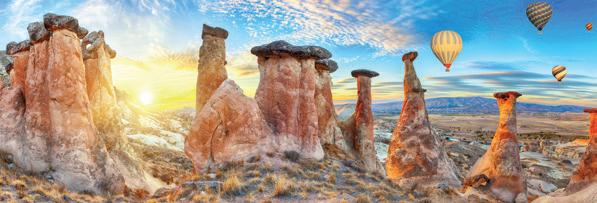 Media Pensión. Salida temprana hacia la región de Capado cia, donde la indescriptible armonía de un calidoscopio de colores, torna los tonos rojos y marrones en: grises, verdes y amarillos. En la ruta visita al Caravanserai Seleúcida “Sultan hani”, ubicada en la legendaria Ruta de la Seda, y que servía como lugar de parada para las caravanas de comercio, pere grinaje o militares. Cena y alojamiento.