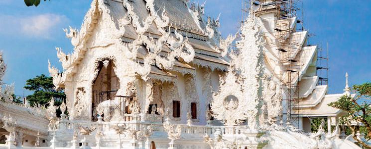ruta visitaremos los templos Wat Rong Suean Ten o Templo Azul y Wat Rong Khun o Templo Blanco A continuación, conoceremos el Triángulo de Oro y la Casa del Opio. Almuerzo en restaurante local y salida hacia Chiang Mai (aprox. 3 hrs). Al llegar visitamos el templo más conocido de Chiang Mai, Wat Doi Suthep, situado en la cima de una pequeña montaña a unos 15 Km al noroeste de la ciudad. Traslado al hotel. Alojamiento.