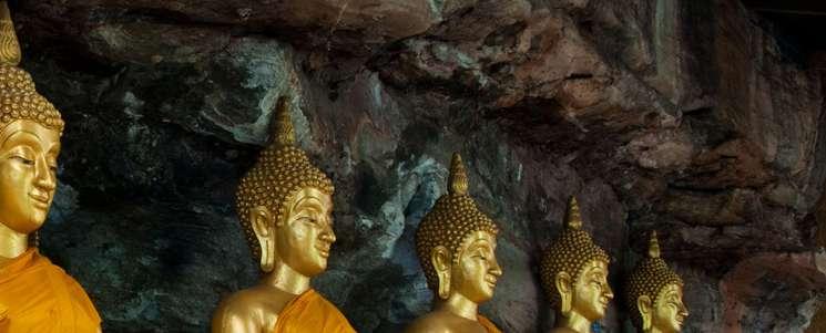 Llegamos a la Bahía de Phang Nga, o más conocida como la isla de James Bond, por ser el escenario de una película de la saga de 007. La isla está formada por cientos de islotes, cuevas y manglares, lo cual le imprime una magia y calidez únicas. En canoa nos adentramos en las enigmáticas cuevas de Tham Lot Noi y Tham Lod, un sistema de alucinantes formaciones geológicas donde estalactitas y estalagmitas han crecido durante siglos y que hoy en día conviven en armonía. La cueva Tham Lod es muy antigua, de la era de la Prehistoria, y las excavaciones demostraron que sus primeros habitantes cultivaban plantas leguminosas, todavía existentes y visibles, así como frutas y verduras. Regreso al muelle para continuar hacia el templo Suwan Khuha , o Cueva de los monos, otro magnífico ejemplo geológico convertido en lugar de culto para los locales y en un modo de subsistencia para los monos que la han invadido. Antes de volver a Krabi tomamos un merecido descanso con la refrescante visita a una cascada.