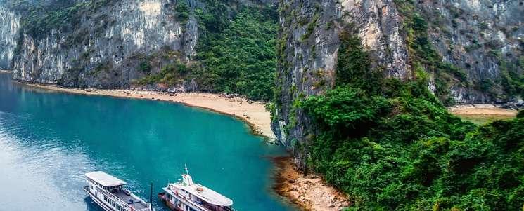 Día 14: NINH BINH - HALONG Desayuno en el hotel. Viaje por carretera hasta Halong aproximadamente 3 horas. A las 12.30-13.00pm embarcamos y el almuerzo se sirve justo después. Descubra la bahía de Halong “El Dragón descendiendo al mar” como se le conoce en vietnamita, reconocida como nuevo patrimonio de la humanidad de una excepcional belleza natural. La pintoresca Bahía de Halong cuenta con más de 3.000 islotes de piedra caliza surgiendo de un agua esmeralda, muchos de ellos contienen hermosas grutas. Cena y alojamiento a bordo. Nota: El itinerario está sujeto a las condiciones meteorológicas y puede sufrir cambios. No se incluye guía de habla hispana a bordo del crucero.