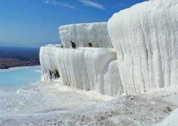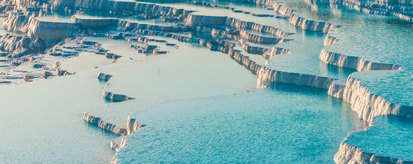 Desayuno. Salida temprana para visitar el Caravaseir Seleúcida “Sultanhani”, ubicada en la legendaria Ruta de la Seda, y que servía como lugar de parada para las caravanas de comercio, peregrinaje o militares. Continuación hacia Pamukkale o también conocida como “castillo de algodón”, pequeña localidad famosa por sus piscinas de travertino de color blanco petrificadas y formadas por cal contenida en el agua de los manantiales termales que emanan en la zona. Regreso al hotel. Cena y alojamiento.