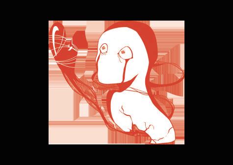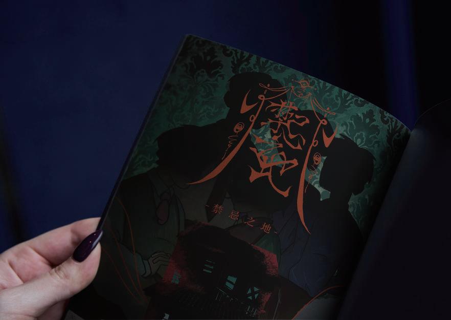 依照我們設計的時代背景,結合復古感去做構思,紅色線條象 徵中劇情中的四人將受到邪教的獻祭纏繞......