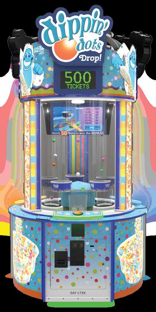 This fast-paced, multi-station game lets up to three players race against the clock to catch 50 colorful “Dots” in the rotating ice cream bowls. The more Dots caught, the more tickets won.