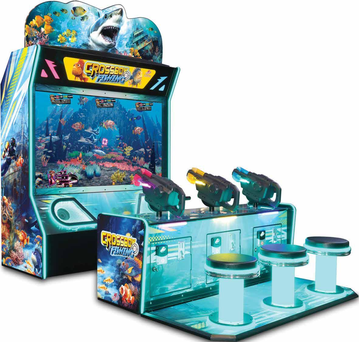 In this immersive fishing game, players aim a crossbow-style launcher to catch a variety of fish across vibrant ocean environments. Players must quickly reel in their catch to earn points.