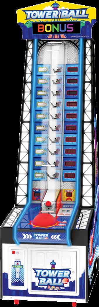 In this skill-based game, players must carefully judge their strength as they hit the red button to send their ball up the tower, aiming for one of the designated win zones.