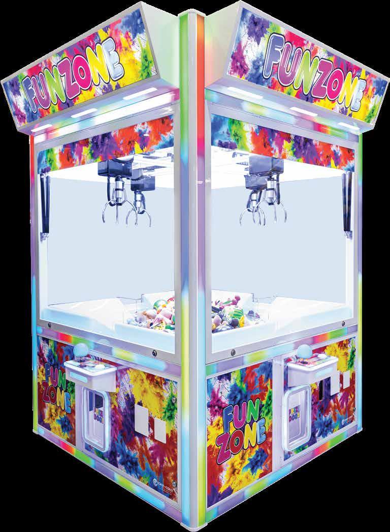 In this crane, each player station has its own prize playfield to try and skillfully extract the prize. The four prize chamber allows for a multitude of prize offerings in one compact package.