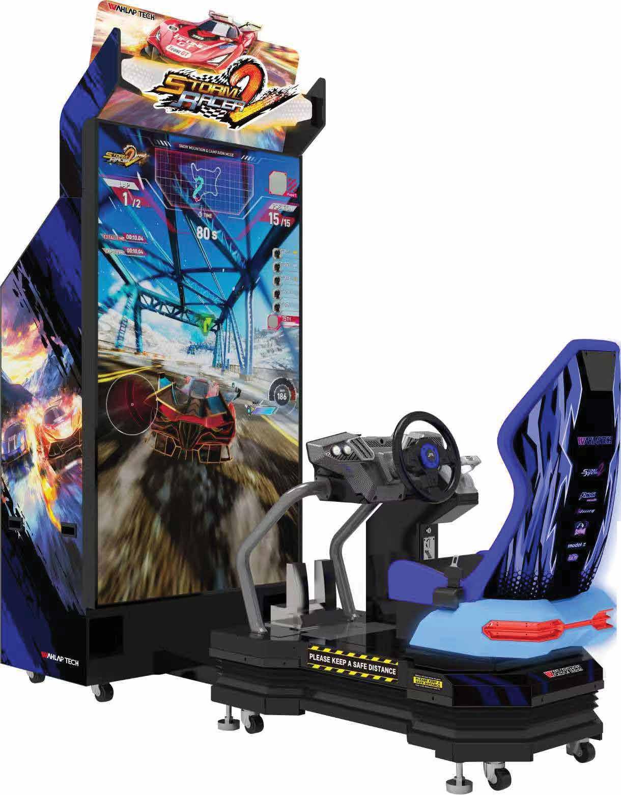 This dynamic level-crossing, laser shooting game will entertain players of all ages with its engaging gameplay, 65” LED display and motion-enhanced seating.