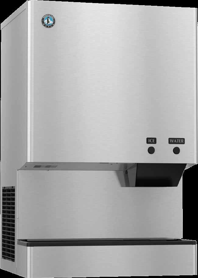 This air-cooled Cubelet Ice & Water Dispenser produces up to 257 lbs. of nugget-style ice per day and store up to 10 lbs. at a time. With easy push-button operation, it conveniently dispenses either ice or water. The sanitary design keeps ice fully enclosed until dispensed, helped to reduce the risk of cross-contamination.