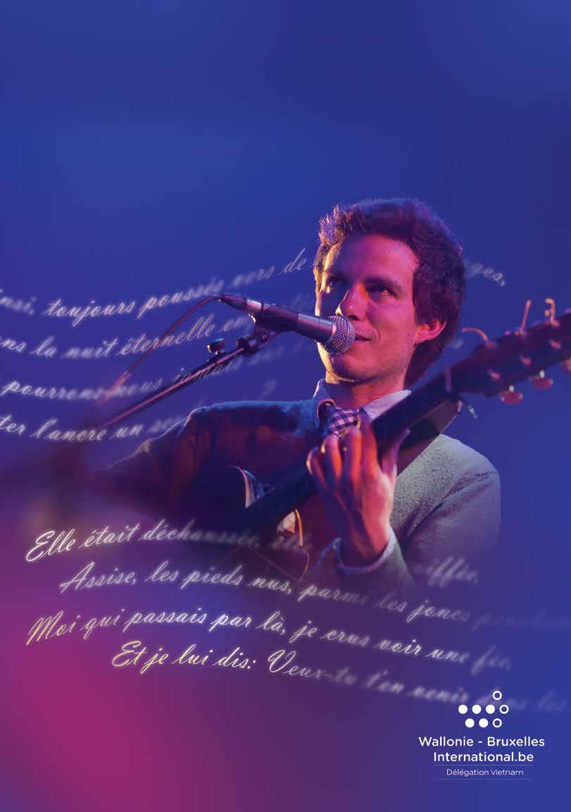 Nous avons remarqué l’enthousiasme chez les artistes de WallonieBruxelles et grâce à eux, le public de Hue a découvert, avec grand intérêt, des facettes de la culture et de l’art francophone en Belgique. 3 2 1
