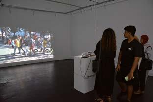 On retiendra notamment le travail de Nabil Himich, qui, vivant et travaillant à Marrakech, interroge la notion de l’espace et du temps, et par là, les restes du colonialisme (ou protectorat) européen au Maroc. Quels sont nos liens avec un passé marquant ? Comment s’en défaire ? Comment réinterroger le présent. Ainsi, il a réalisé un collage de pages de ses carnets de dessins, ses « lieux de contestation » comme il le dit lui-même, superpositions de lieux et impressions qui interrogent. Un travail esthétique et politique sur lequel l’artiste multidisciplinaire diplômé de l’Institut National des BeauxArts de Tetouan, comme la majorité des artistes présents à cette exposition, est particulièrement dissert. Ex-résident à Moussem, il explique à quel point, pour lui, l’architecture et