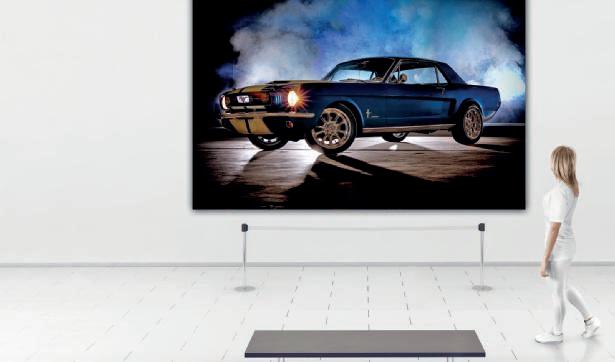 spräch, in dem die Vorlieben des Kunden erfragt werden, um den Charakter der Beziehung zwischen Auto und Besitzer zu ergründen. Beim Shooting selbst, das drei bis fünf Stunden dauern kann, darf man seit Kurzem auch dabei sein, um etwa Rauchbomben zu halten. Mit einer speziellen Technik der Hintergrundgestaltung, bei der Epoxidharz zum Einsatz kommt, geht es bei der Erstellung des Kunstwerks weiter. Da kann es schon mal vier Wochen dauern, bis es zur Übergabe kommen kann. „Die Kamera ist nur eines meiner Werkzeuge“, daher nennt sich der Benzinkopf auch nicht Fotograf.