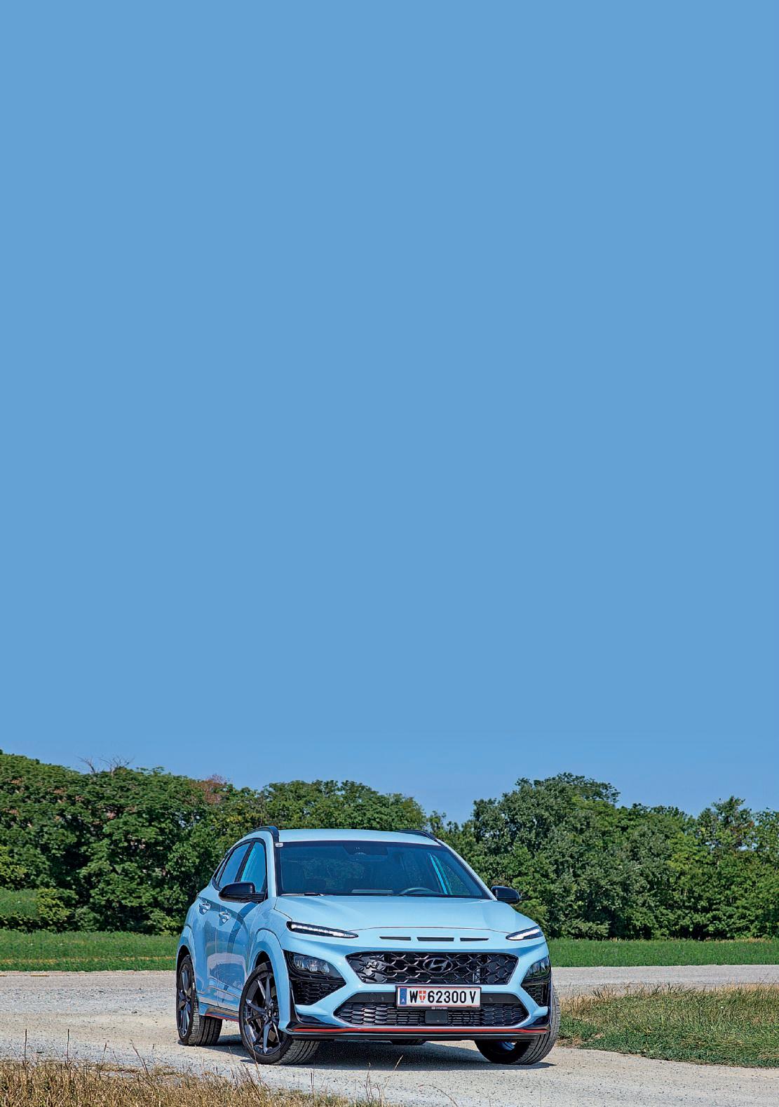Natürlich ist die grundsätzliche Frage erlaubt, wie viel Sinn ein so vernünf tiges Auto mit einem so starken Motor ergibt. Nüchtern betrachtet ist der Kona N aber einfach nur ein Kind seiner Zeit. Kompakt-SUV werden auch bei den Jüngeren immer beliebter, ein Spaßmobil extra fürs Wochenende zu unterhalten kann und möchte sich aber kaum jemand leisten. Hier gibt’s alles in einem und streng genommen war es doch nur logisch, dass eine so vielseitige Fahrzeugklasse einmal auch den Weg in die sportliche Ecke finden würde. •
