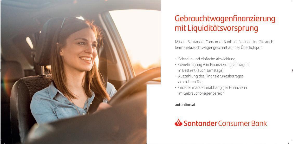 Eine neue Kooperation zwischen der Santander Consumer Bank und CarGarantie Österreich bündelt die Kernkompetenzen zweier starker Partner auf dem Markt: Der Name des Produkts ist „AutoCare powered by CarGarantie“, dabei handelt es sich um eine neue Reparaturkostenversicherung, die als attraktives Kombinationsprodukt gemeinsam mit einem Finanzierungsvertrag der Santander Consumer Bank abgeschlossen werden kann.