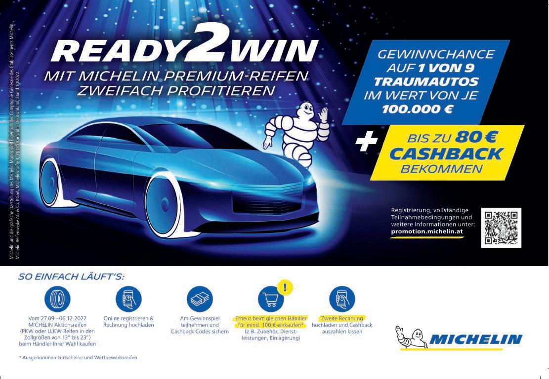 Steinberger, Michelin: Grundsätzlich ist die aktuelle Situation für fast alle Branchen gleich. Auch die Rei fenbranche wird von einer gewissen Zurückhaltung im Konsumverhalten geprägt werden. Umso wichti ger ist es in diesen Zeiten, auf Qualität zu achten, sodass man so lang wie möglich von den Stärken eines Produktes profitieren kann. Michelin-Reifen vereinen Langlebigkeit und Peformance vom ersten bis zum letzten Kilometer, heißt, Michelin-Reifen können problemlos und sicher bis zur gesetzlich vor geschriebenen Profiltiefe gefahren werden. Auf lange Sicht tut dies sowohl dem Geldbeutel als auch der Umwelt gut.