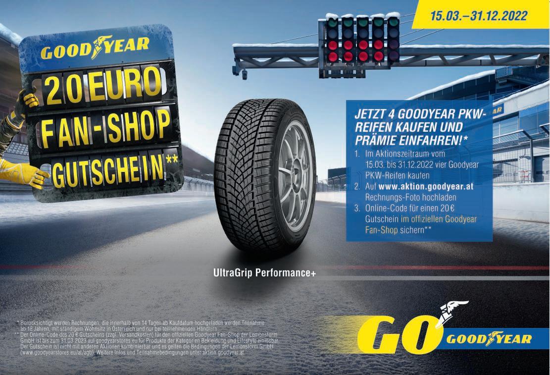 schneidet demnach als bester von 35 Kandidaten sowie als umweltfreundlichster und nachhaltigster Ganzjahresreifen ab. „Diese Auszeichnung ist der jüngste Beweis für un sere führende Marktstellung bei Ganzjahresreifen und bestätigt, dass wir auf dem richtigen Weg sind, unsere Nachhaltigkeitsziele zu erreichen“, freut sich Mag. Tassilo Rodlauer, Geschäftsführer Goodyear Austria GmbH. • (KAT)