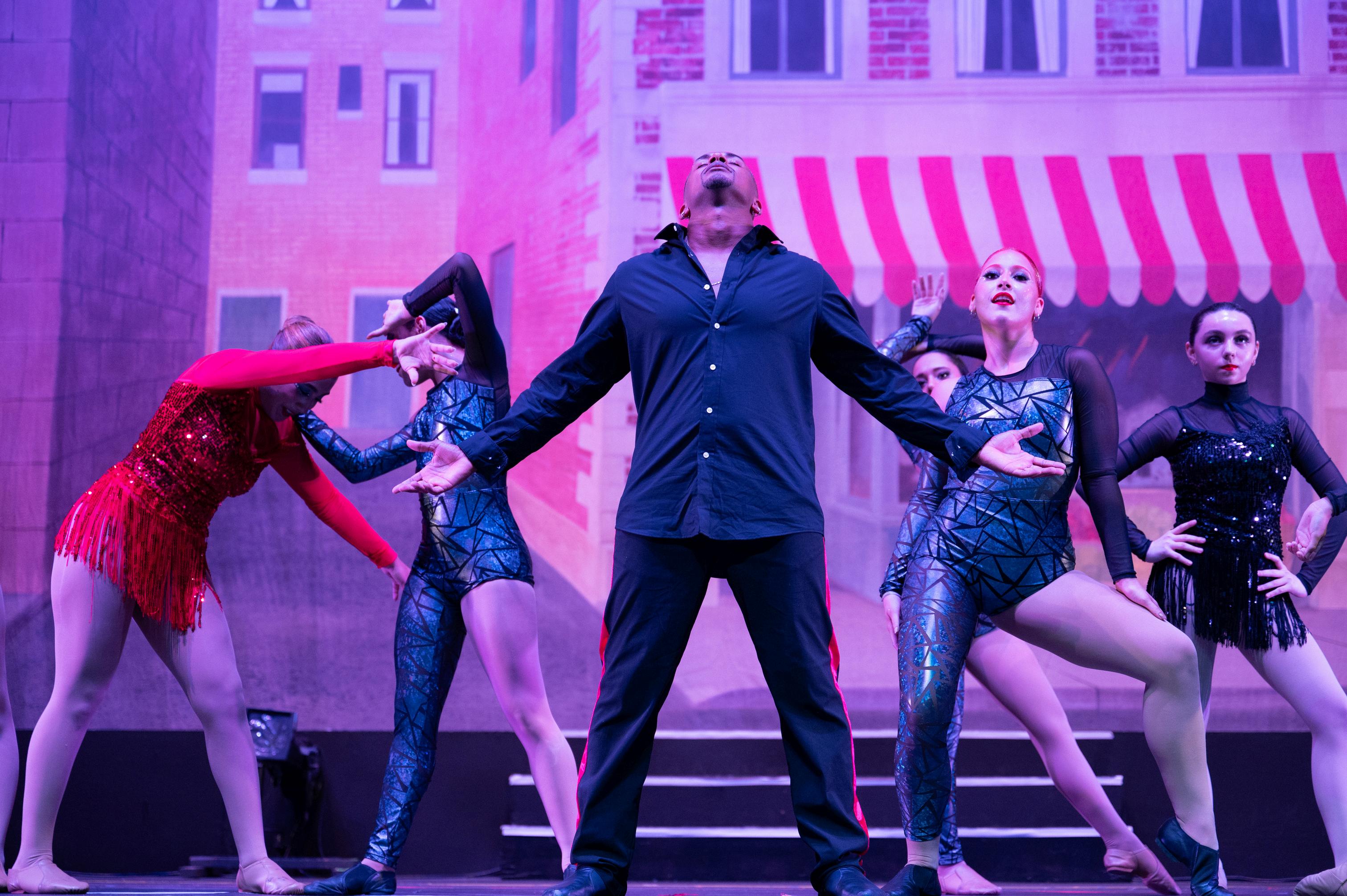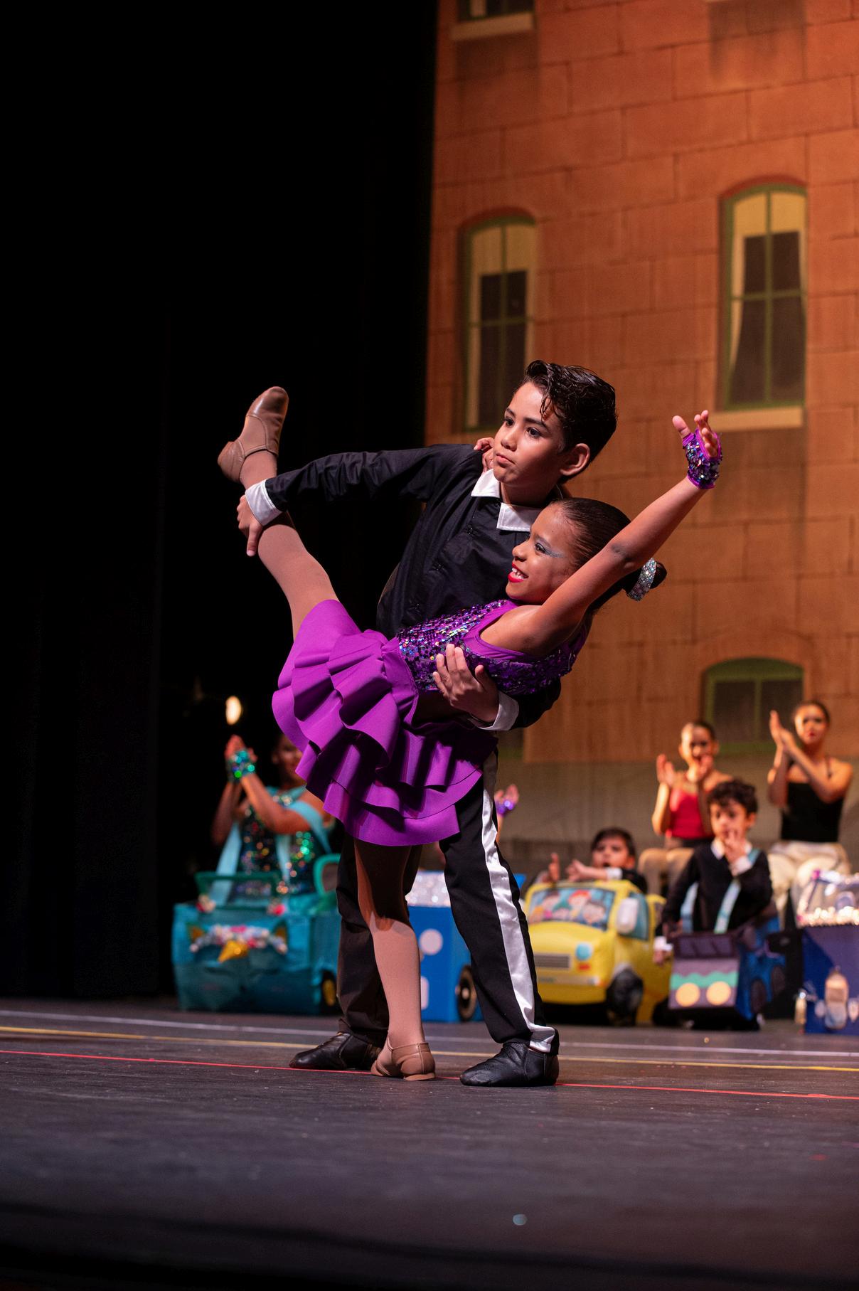 equipados por el propio elenco Mientras los autos se estacionaban al fondo del escenario, un grupo de bailarines invadía las calles de la ciudad En un abrir y cerrar de ojos, comenzó un baile de Hip-Hop mezclado con reggaetón Las diversidad de canciones no faltaron, pues después de todo AXDA ofrece cursos de Ballet, Jazz, Salsa, Hip Hop, Break Dance, Belly Dance y otros. Desde artistas locales como Bad Bunny y Don Omar hasta otros extranjeros como Íñigo Quintero y Ruth B. formaron parte de las canciones escuchadas y bailadas durante el evento.