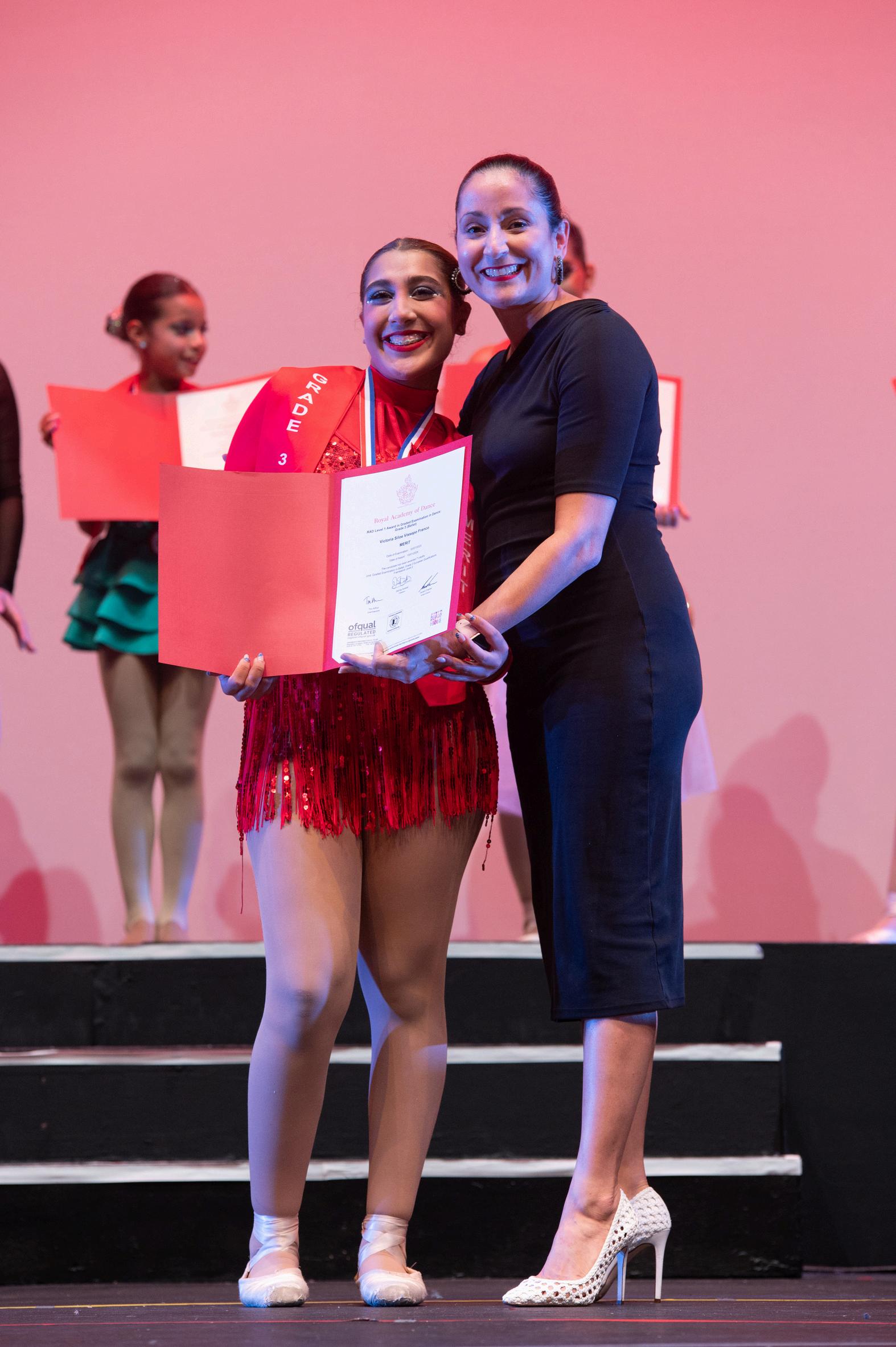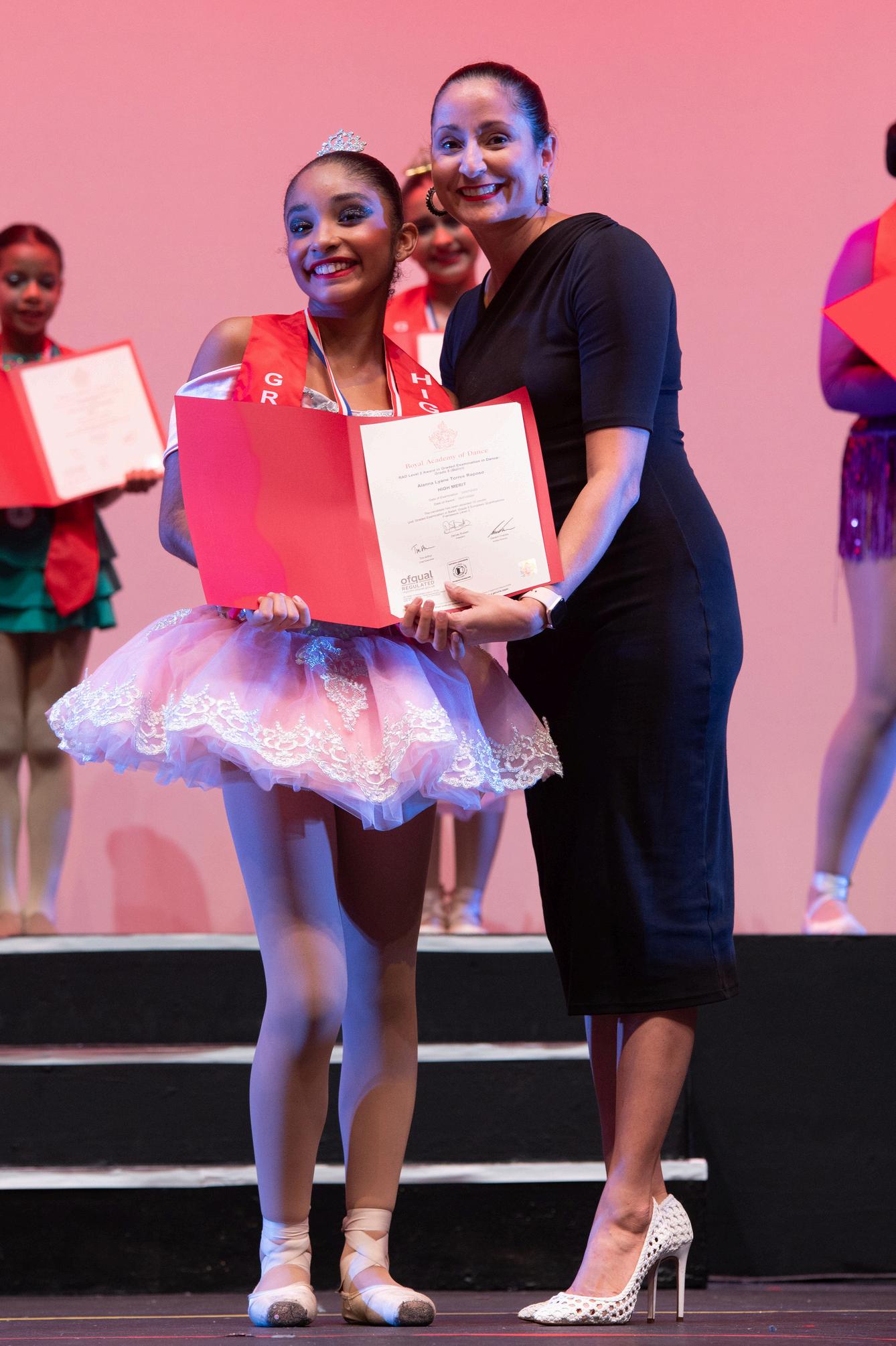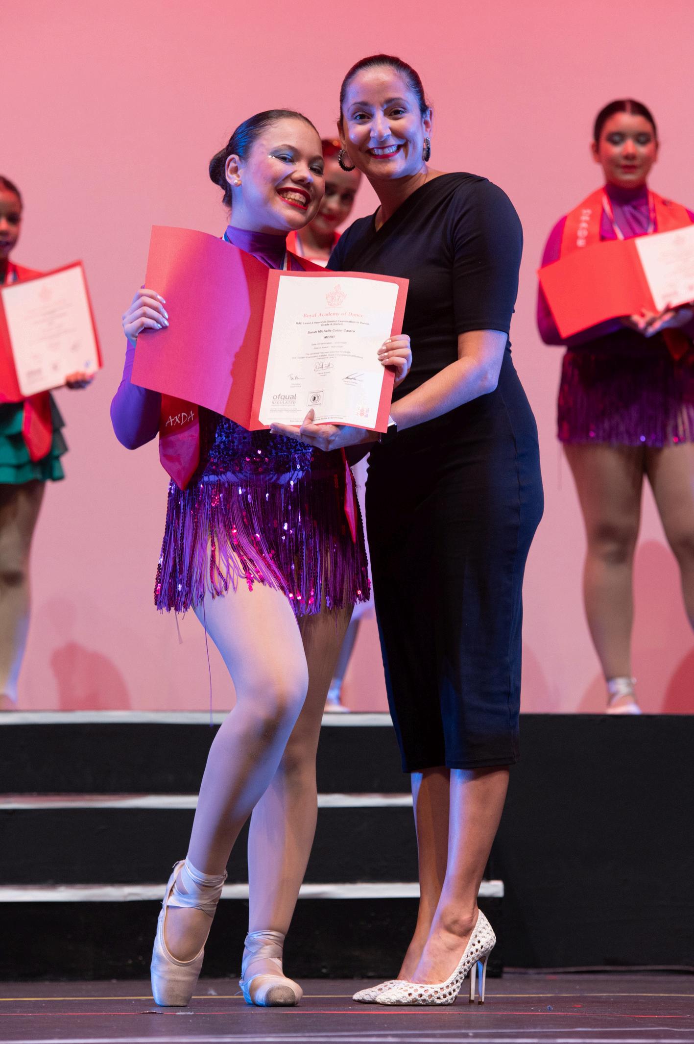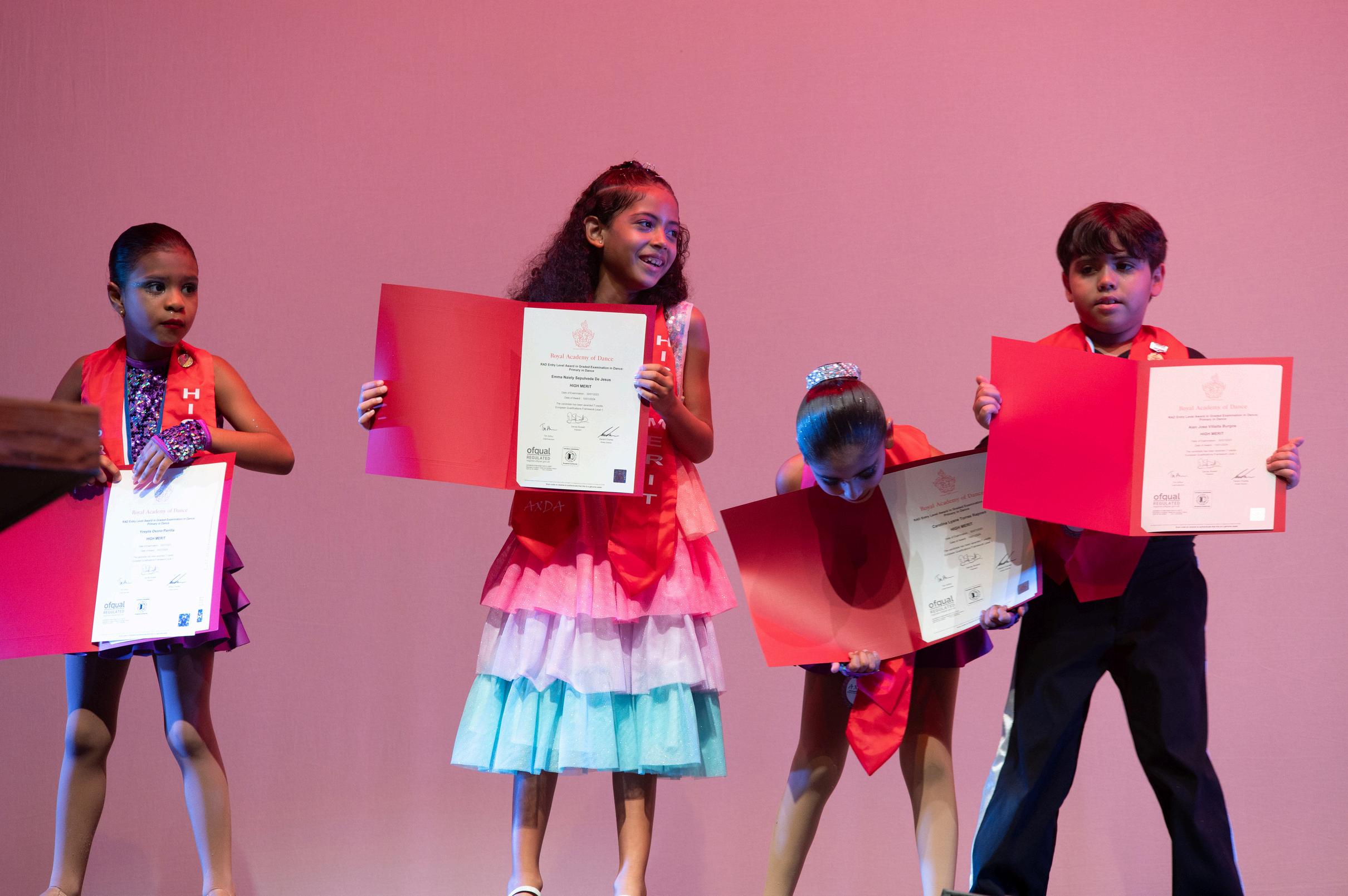 Una vez culmina la producción, los alumnos de ballet que transicionaron de nivel, mediante los exámenes de la RAD, son reconocidos por AXDA frente a todas las personas espectadoras del evento A los bailarines, se les hace entrega de sus diplomas, transcripciones y medallas de la Royal Academy of Dance, los cuales evidencian el logro de haber superado un grado para integrarse a otro más avanzado