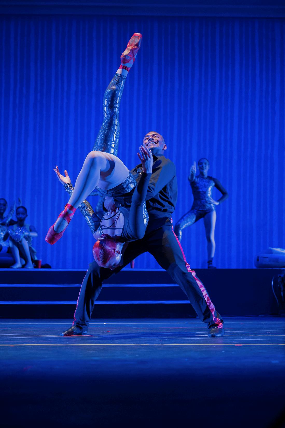 Como si se tratase de un multiverso artístico en el que convergen distintas estilos de danza, el ambiente del escenario transicionó de un ballet clásico a un baile lleno de sabor y sazón tropical siguiendo el ritmo de una canción de Enrique Iglesias y Gente de Zona.