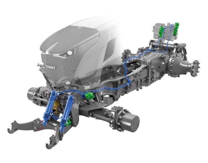 • Fendt stabilitás kontroll (FSC): automatikusan csökkenti az oldaldőlést 20 km/h feletti sebességnél, és aktívan elnyomja a dülöngélést kanyarodáskor
