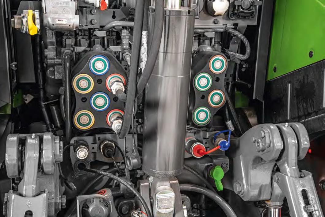 • Moduláris hidraulikus gyorskapcsoló rendszer: UDK-, DUDK- vagy lapos tömítésű FFC csatlakozók elöl és hátul – kisebb nyomásveszteség, csökkentett fogyasztás, szivárgásmentes