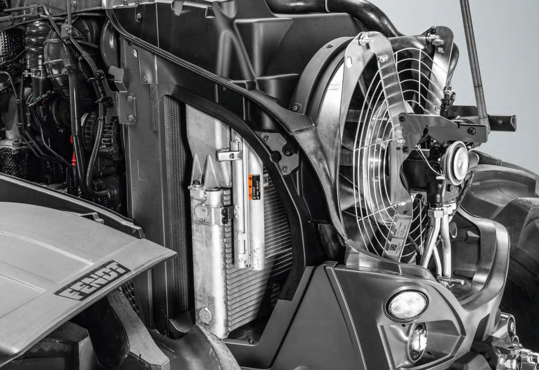 • Hűtési koncepció: Concentric Air System (CAS) nyomó hűtő ventilátorral (a Fendt 1000 Vario-val analóg módon)
