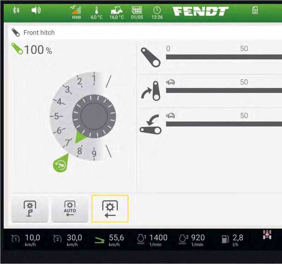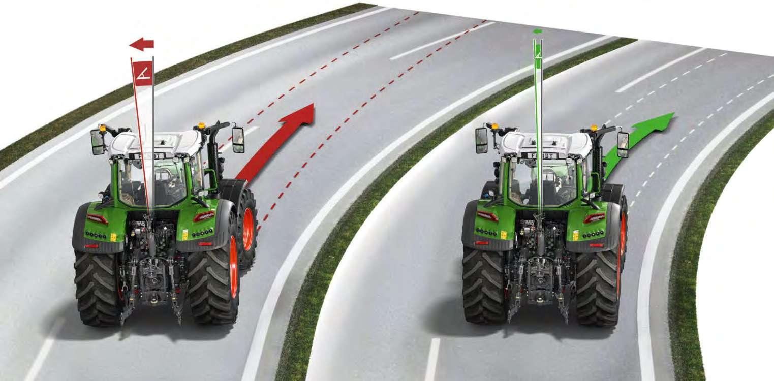 • Fendt stabilitás kontroll (FSC): automatikusan csökkenti az oldaldőlést 20 km/h feletti sebességnél, és aktívan elnyomja a dülöngélést kanyarodáskor