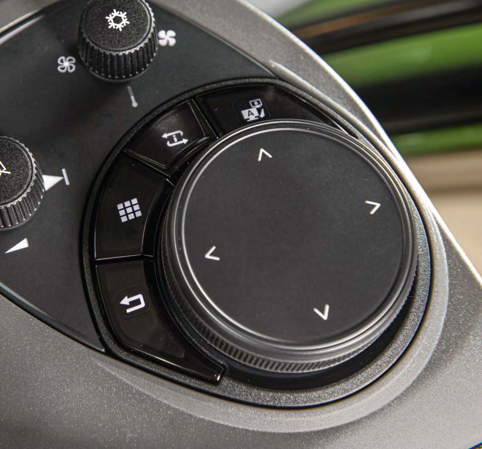 • Akár három megjelenítési lehetőség kombinációja: 10"-os műszerfal, 12"-os terminál a kartámaszon, tetőbe tolható 12"-os terminál