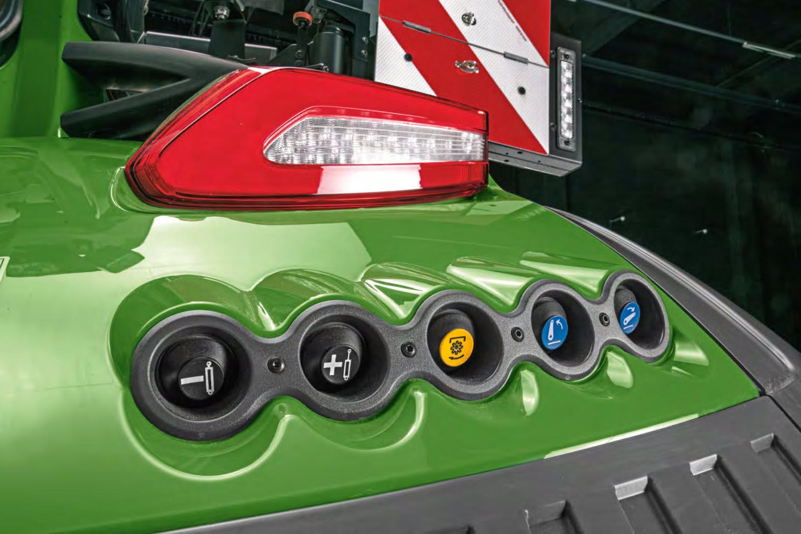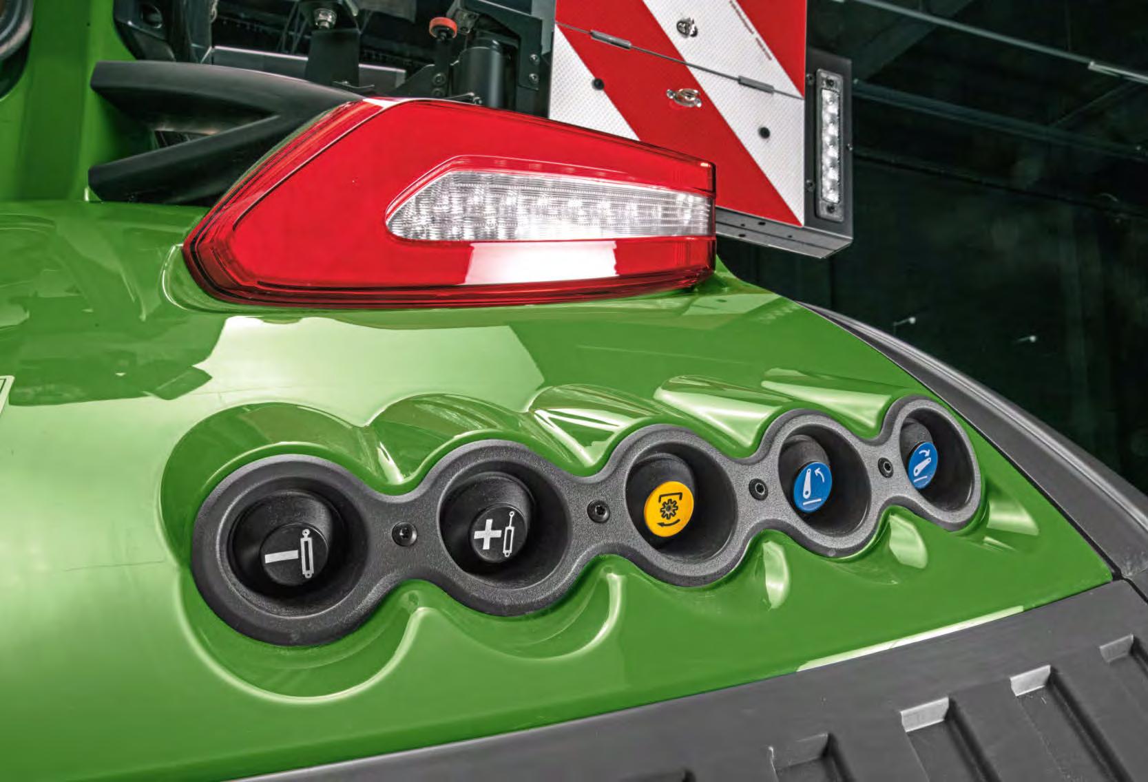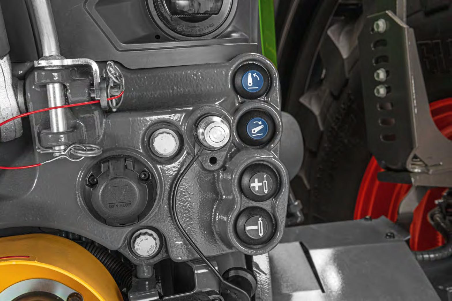 • Nagy teljesítményű hidraulika: akár 220 l szállítási mennyiség, lapos tömítésű FFC csatlakozók elöl és hátul, tehermentesítő hátsó emelőmű, hidraulikus felső függesztőkar emelés-segítővel