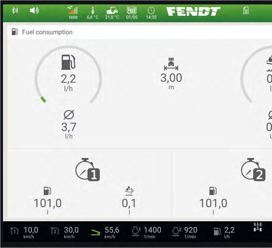 • Fendt iD alacsony fordulatszám koncepció: alacsony üzemanyag-fogyasztás a névleges fordulatszám jelentős, 1 700 ford./perc-re csökkentésének köszönhetően
