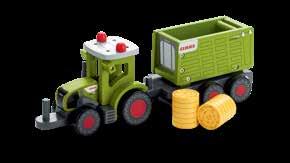 - FSC-tanúsítvánnyal rendelkező fából készült traktor - billenthető pótkocsi, szalmabálákkal - az utánfutó fedele nyitható, szabadonfutó