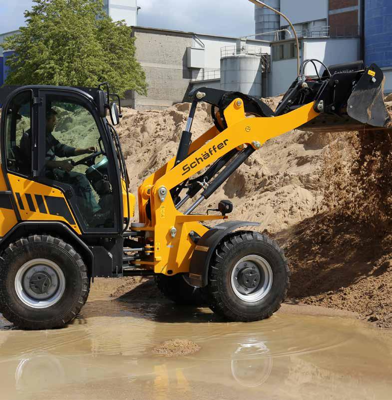A gyors és mozgékony rakodógépek számos saját fejlesztést tartalmaznak, az alvázat valamint a hajtást illetően is. A Schäffer építőipari és mezőgazdasági rakodógépei eltérő gém kialakítással rendelkeznek, így garantálva a legjobb teljesítményt az adott típusú munkához. A német gyártó kínálatába elérhetők tisztán elektromos hajtású modellek is.