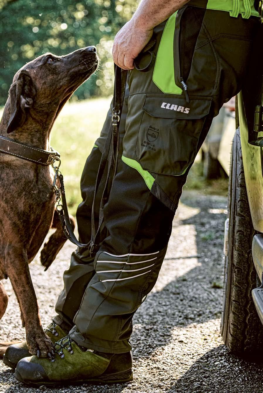 2 Férfi nadrág, PSA 3 Vágásvédelemmel ellátott nadrág, CLAAS logó a combon, ergonomikusan kialakított varrás a nagyobb mozgásszabadság érdekében, két cipzáras oldalzseb, CORDURA® anyaggal megerősített zsebek, ergonomikusan elhelyezett zseb a jobb oldalon, CORDURA® anyagból tágas combzseb bal oldalon, rugalmas derékbetét vesevédelemmel, előre formált térd és belső lábszár CORDURA® megerősítéssel, szellőzőbetétek softshellből és háló a térd hátsó része felett, beépített lábszárvédők hálóból szennyeződés- és rovarvédelemként, kampókkal rögzíthetők a cipőhöz, derékpánt két kapoccsal és belső gomb a biztonságos záráshoz, kilenc rétegű vágásvédő anyaggal, EN 381-5 , 1 osztály, design A. 65% poliészter, 35% pamut, mosógépben mosható.