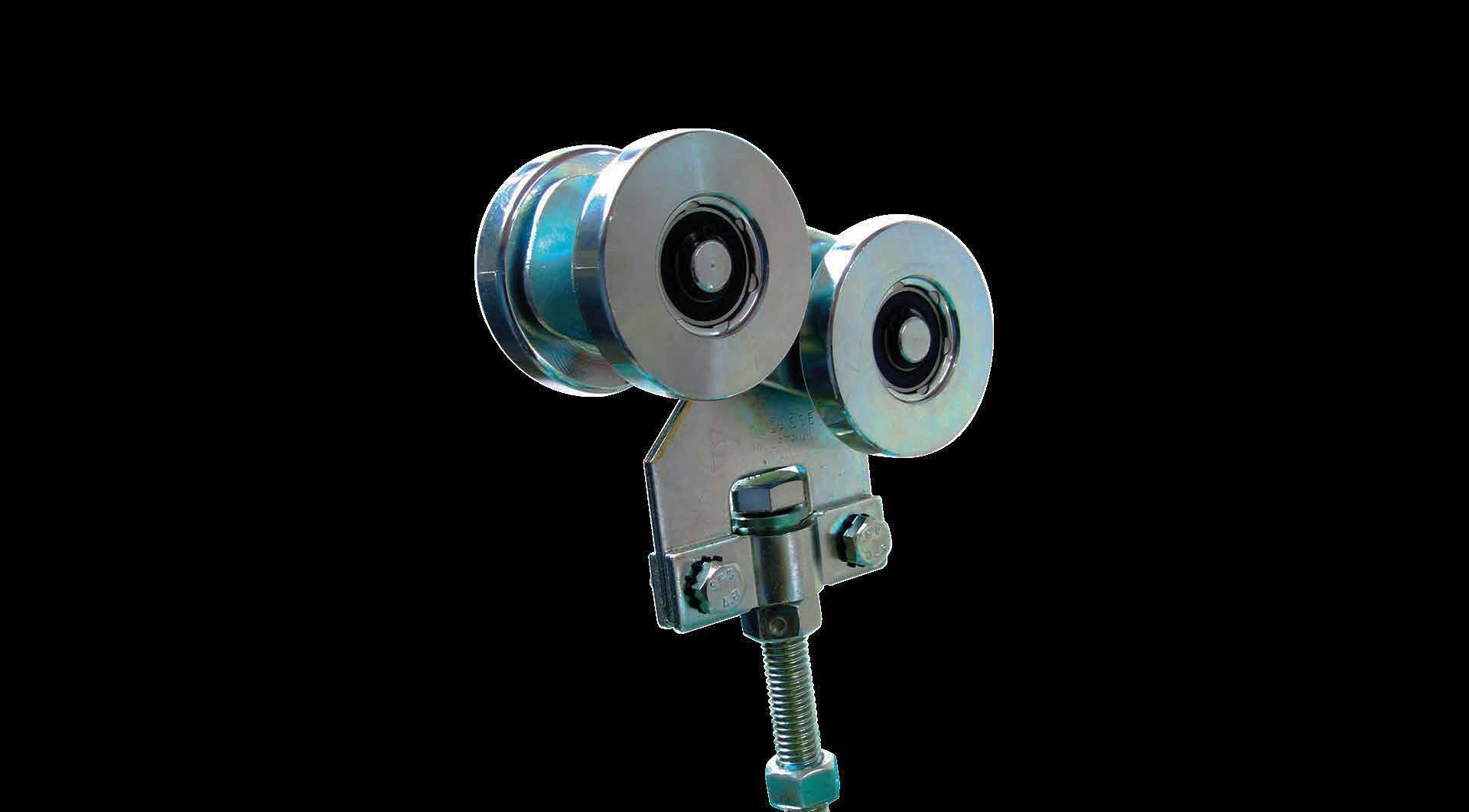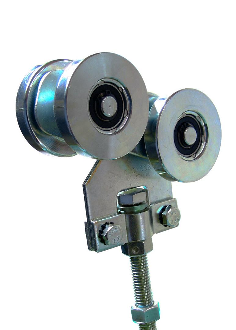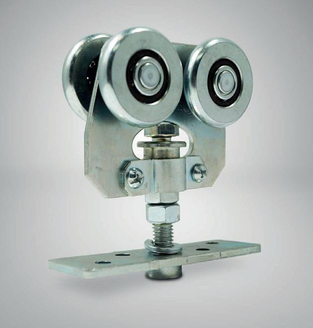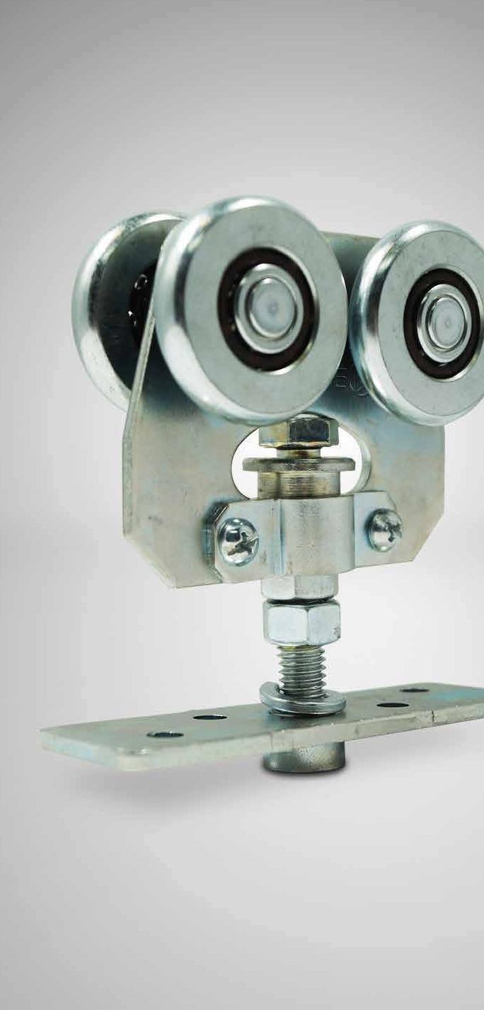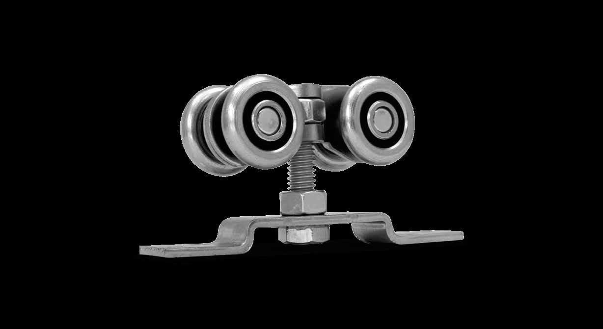 Sistema corredizo colgante, fabricado en acero con rodamientos de alta presión. Compuesto de 2 correderas testeadas para funcionamiento continuo de portones de hasta 300 Kg. Amplia resistencia y durabilidad en diversos ambientes.