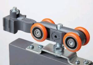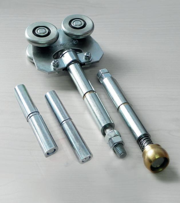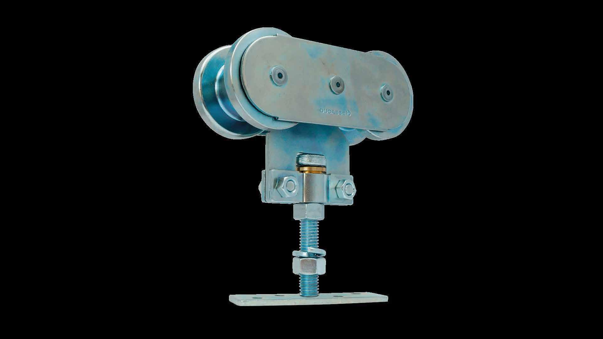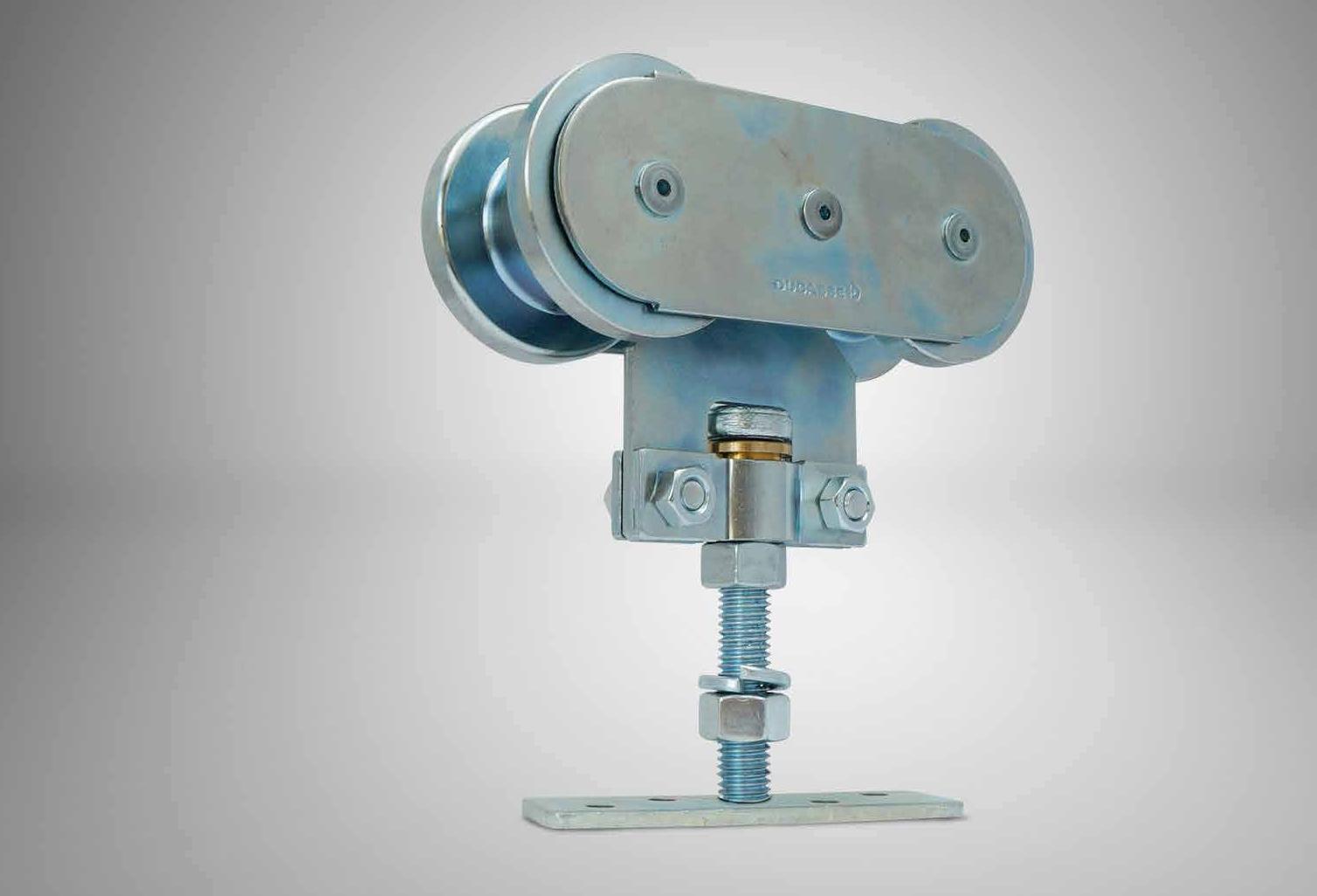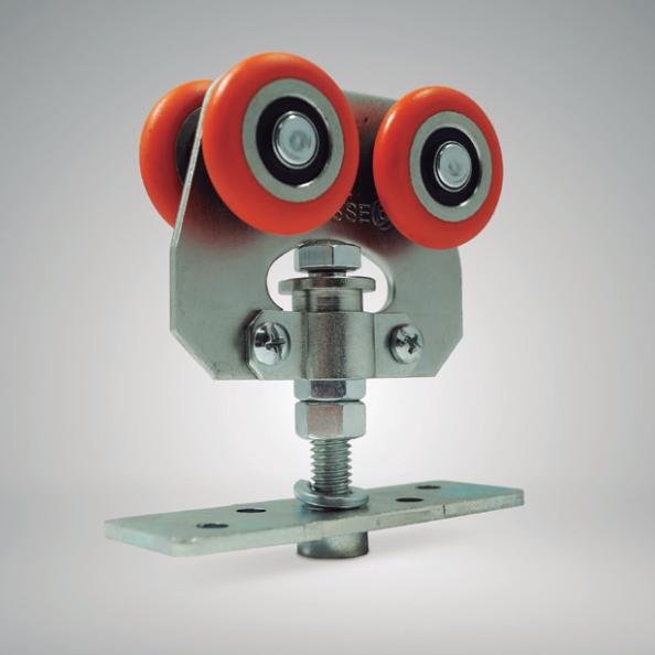 Sistema corredizo colgante, fabricado en acero con rodamientos de alta presión. Compuesto de 2 correderas testeadas para funcionamiento continuo de portones de hasta 300 Kg. Amplia resistencia y durabilidad en diversos ambientes.