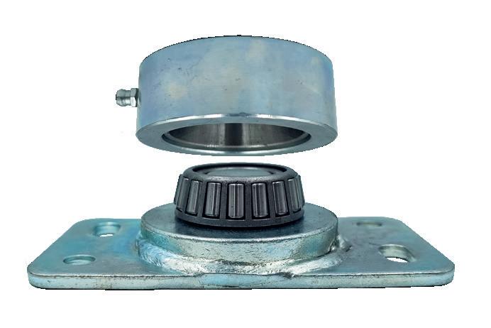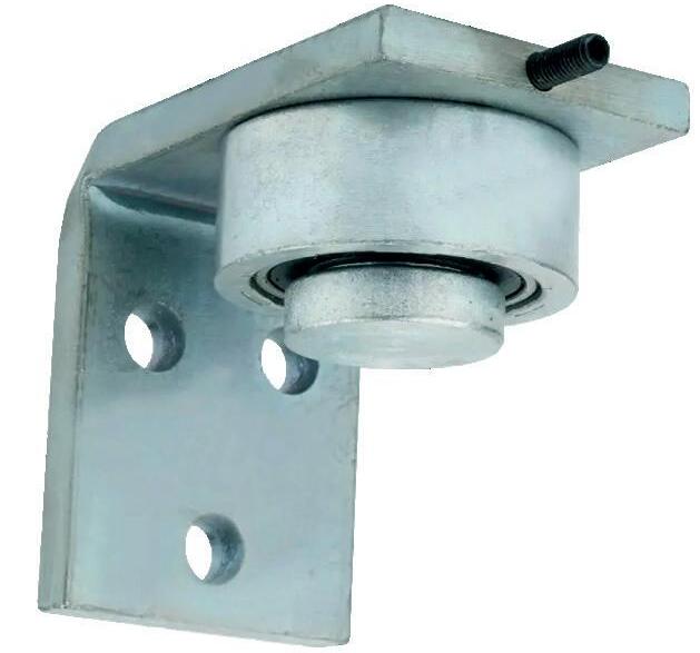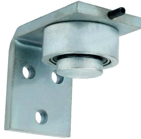 Quicio inferior con base para fijación, fabricado en acero galvanizado con alta resistencia a la corrosión, diseñado para aplicaciones residenciales, industriales y portones mayormente automatizados. Cuenta con rodamiento de carga axial y “suplicador grasera” que asegura la correcta lubricación del rodamiento. Su instalación inferior incluye una base sólida con dos ranuras que permiten graduar la posición, garantizando un ajuste preciso, firmeza y un óptimo desempeño en portones batientes de alta carga.