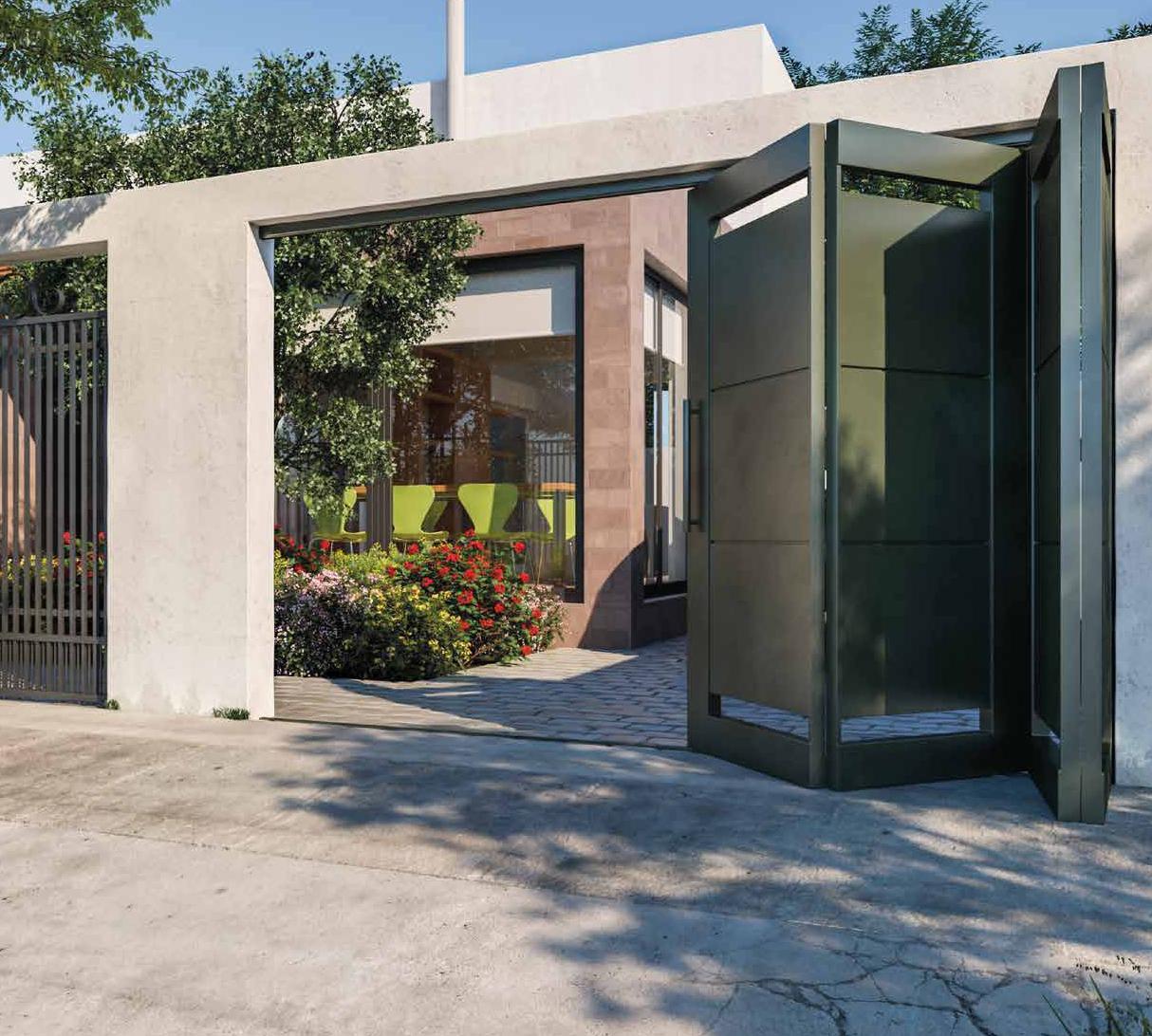 Sistemas corredizos colgantes y al piso, junto con accesorios de alta precisión que entregan resultados de excelente calidad y otorgan mayor seguridad a las soluciones de portones livianos y pesados.