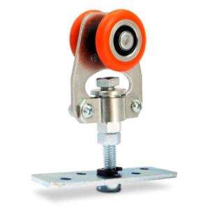 Sistema corredizo colgante con rodamientos de acero templado, de alta resistencia y durabilidad. Uso para portones plegables de hasta 75 kg por hoja. Instalación dentro de vano