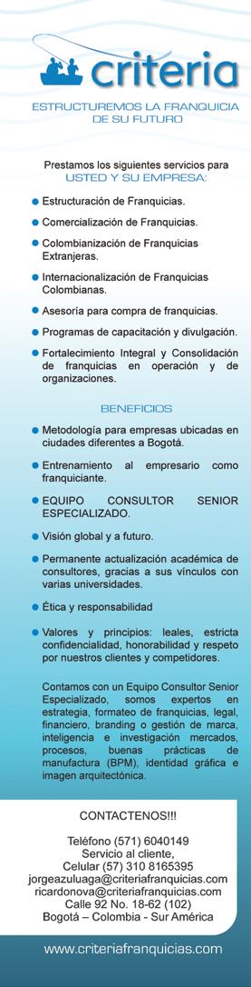 Criteria ha ingresado al grupo de proveedores de LA BARRA para prestar servicios de consultoría a las empresas del sector de la hospitalidad. Esta firma consultora presta servicios de estructuración, comercialización, asesoría para compra de franquicias e internacionalización de franquicias colombianas entre otros. Miembros de FRONT CONSULTING GROUP.