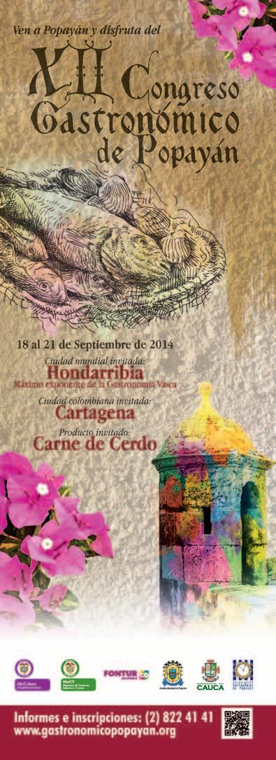Regresa a la capital del Cauca el Congreso Gastronómico, que hizo que en 2005 la Unesco la declarara “Ciudad Creativa de la Red de la Alianza Global para la Diversidad Cultural”. Para esta versión los invitados de honor serán Hondarribia, del País Vasco Español como ciudad internacional; Cartagena de Indias como ciudad nacional; el producto será la carne de cerdo y placa de honor para Francois Cornellis.