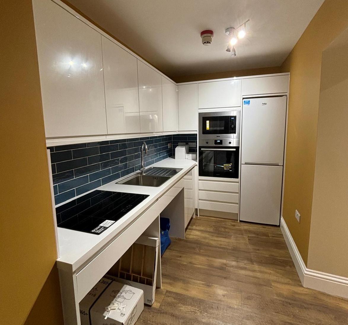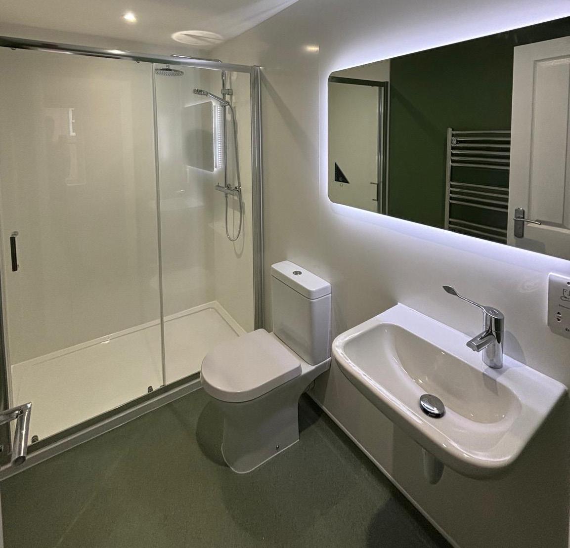 Above and beyond the original scope of works, the team also provided futureproofing measures into the project. Our team installed a new heating system to accommodate the integration of an air source heat pump (ASHP). This upgrade, along with the energy efficient lighting installed, will ensure that the artist accommodation is not only functional and comfortable, but the client also benefits from long-term energy savings.